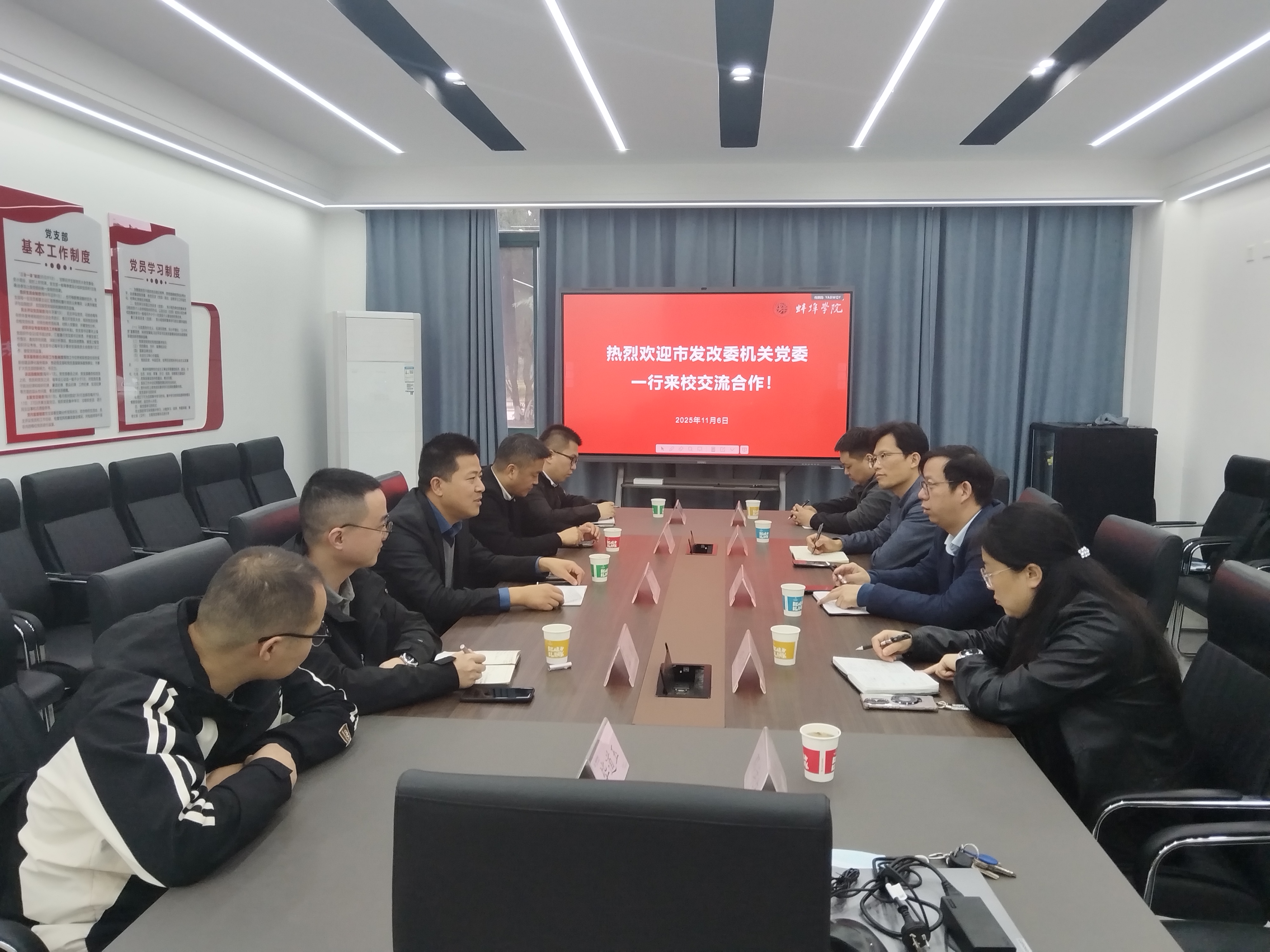 11月6日上午,蚌埠市发改委机关党委副书记张伟一行五人到beat365在线体育官网登录入口行政党总支调研交流。行政党总支书记、科研处处长孙西超,行政党总支委员、信息网络管理中心主任姚保峰等参加座谈交流。座谈会上,孙西超对市发改委一行表示欢迎,并详细介绍了行政党总支基本情况和服务地方工作开展成效。他围绕“党建+业务”融合发展提出合作设想,表示可依托学校在发改系统的创新平台开展党组织共建活动,同时希望市发改委在项目申报、平台建设等...