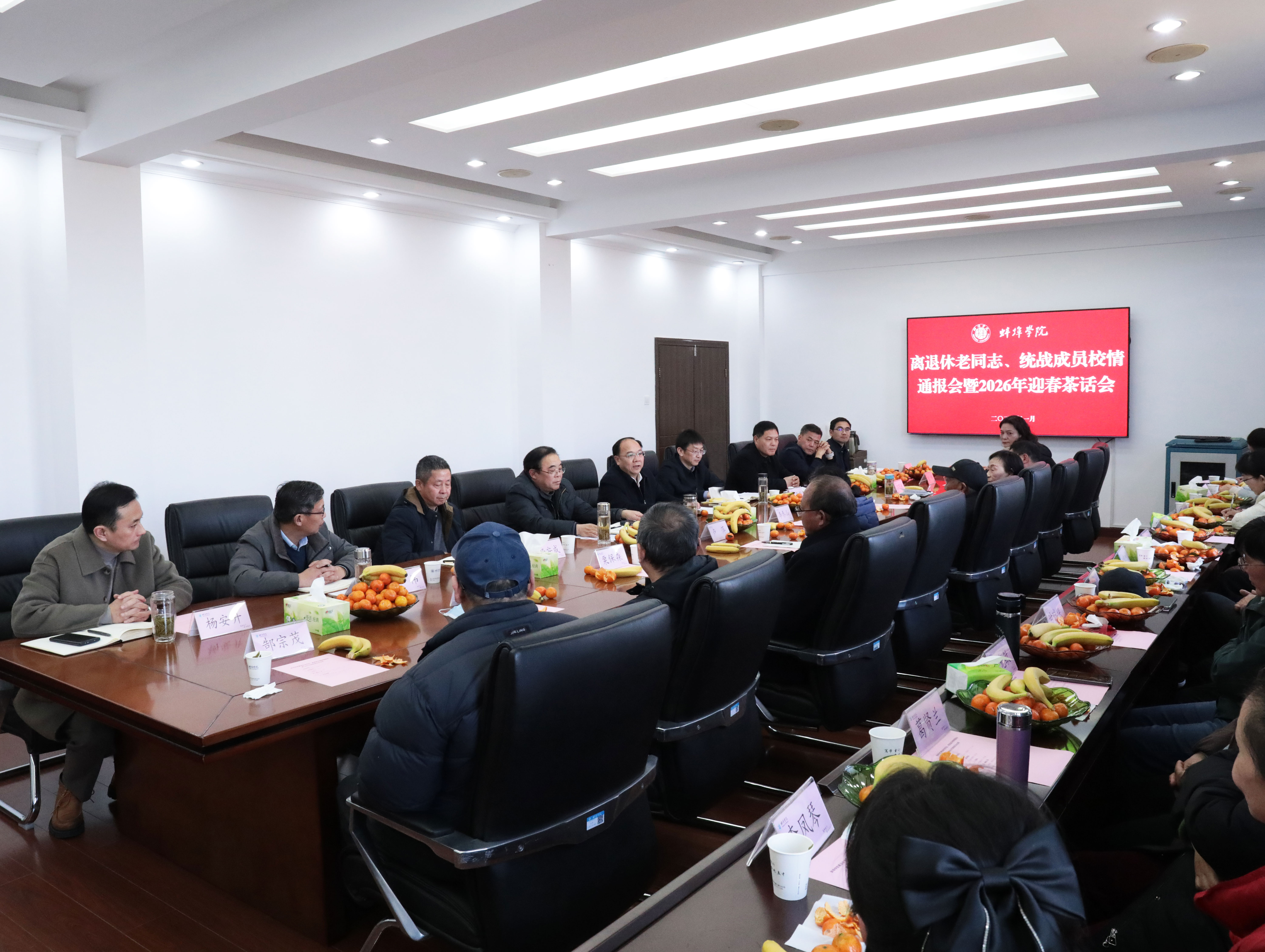 春临岁首,情暖校园。1月15日,学校召开离退休老同志、统战成员校情通报会暨2026年迎春茶话会,畅叙情谊,共谋发展。全体校领导出席会议,离退休老同志和统战成员代表、学校相关部门负责同志参加会议。会议由党委副书记韦文联主持。党委书记陈国龙代表学校党委,向离退休老同志和统战成员致以诚挚的问候和新春祝福。他表示,学校各项事业的蓬勃发展,离不开离退休教职工的历史积淀和党外人士的同心助力,大家是学校高质量发展的宝...