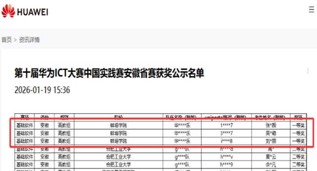 华为ICT大赛成绩揭晓,蚌院学子实现省赛“六连冠”