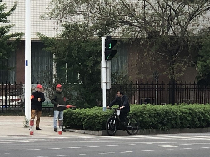 上午8:00—9:00以及傍晚5:00—6:00两个高峰时段,教师志愿者统一着装在安全岛上对非机动车、行人闯红灯,不按道行驶,违规带人,机动车斑马线前不礼让行人等行为进行引导。参加文明交通劝导志愿服务活动的老师头戴小红帽,手举引导旗帜,克服大风降温天气,面带微笑,以饱满的精神状态积极维护交通安全秩序、宣讲交通安全知识、劝导行人遵守交通规则。遇到过往行人和非机动车的不文明交通行为,号召市民遵守交通规则,文明出行。一张笑脸,一个手势,一句温馨提示,维持着城市道路交通秩序,传递着文明出行理念,让此次交通劝导服务行动成为交叉路口一道亮丽的风景线。