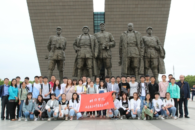为隆重庆祝新中国成立70周年,深入学习贯彻党的十九大精神,大力推进十九大精神“进教材、进课堂、进头脑”,发挥大学生在实践育人中自我教育、自我管理、自我服务的作用,5月18日,beat365在线体育官网登录入口马克思主义学院组织大学生赴合肥渡江战役纪念馆和渡江战役总前委旧址开展主题研学实践活动,2019上半年大学生思政课主题征文一等奖获得者和“青年学习会”学生骨干参加研学。