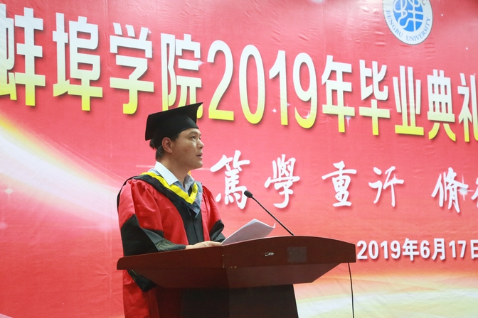 赵大为宣读《关于表彰beat365在线体育官网登录入口2019年品学兼优毕业生及安徽省高校品学兼优毕业生通知》的表彰决议。校领导为各学院本科“优秀毕业生”代表颁奖。