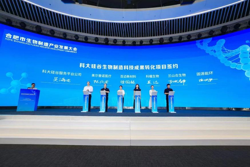 大会旨在汇聚全球生物制造领域的产业专家、企业家和科学家,共同探讨生物制造技术的发展趋势、市场机遇与挑战,促进创新链与产业链融合,推动合肥市生物制造产业高质量发展。开幕式上,《合肥市推进生物制造产业高质量发展行动方案(2024-2026)》发布,合肥合成生物创新研究院、合肥市生物制造产业联盟揭牌,阮仁全代表美尔普诺医疗进行科大硅谷生物制造科技成果转化项目签约。