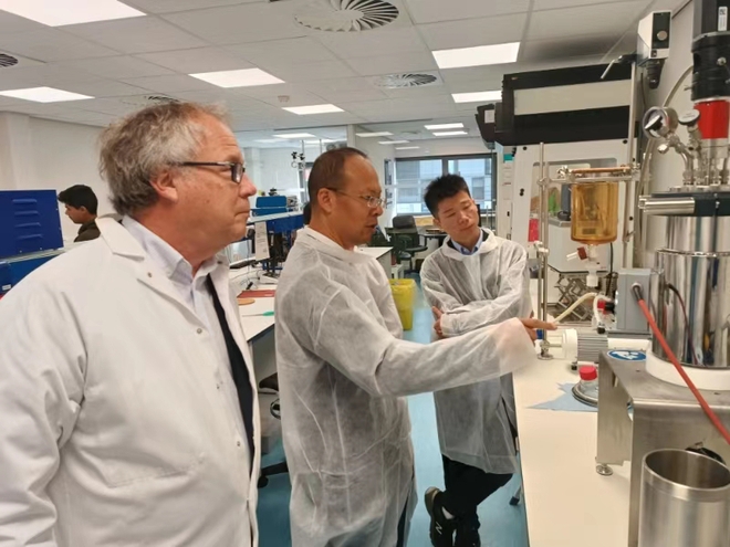 格拉特集团是比利时专业从事食品防腐剂生产的发酵企业。在拜访格拉特集团期间,代表团实地参观了集团的研发创新中心,了解了集团在食品发酵领域的研发重点和方向,并与集团董事长兼CEO傅雷进行了会谈,深入探讨了未来合作方向。