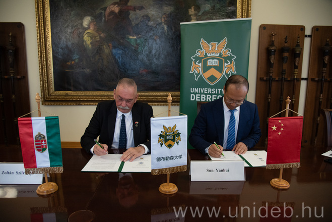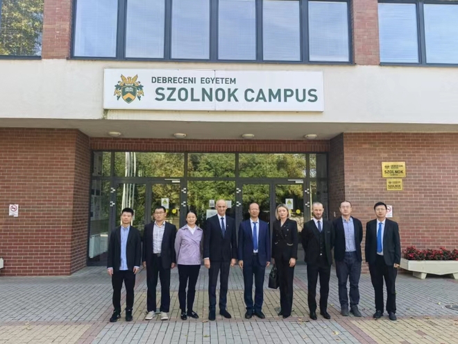 在拜访德布勒森大学本校区时,该校校长左坦·斯尔瓦什陪同孙艳辉一行参观了校区主楼,了解学校发展历史。随后双方签订了两校合作谅解备忘录,并举行了会谈,深入交流了未来的合作方向。