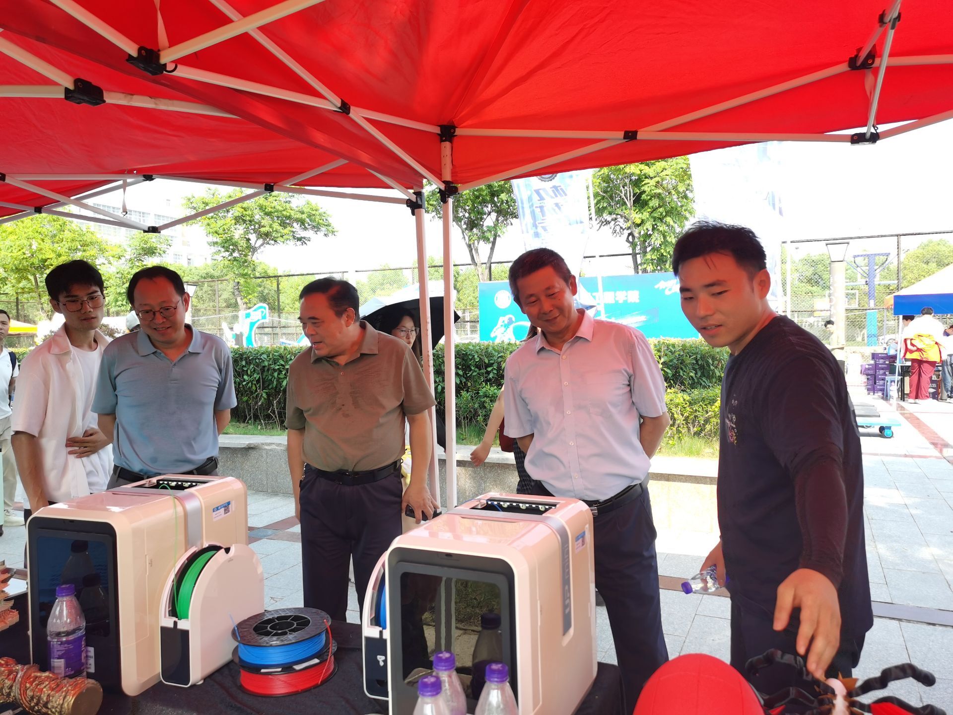 各学院结合专业特色打造的迎新展台,成了校园里的“人气打卡地”。机械与车辆工程学院展台前,两台小型3D打印机正“滋滋”运作,学生们自己打印的精致机械模型让新生直呼有趣。电子与电气工程学院用电路板造型装饰画、闪烁的电子元件模型装点展板,展现电路与电气的奇妙。食品与生物工程学院将具有学科的特色编制手串送给新生,满是温暖。计算机与信息工程学院展台被流淌代码图案的灯带环绕,搭配编程作品展示板,材料与化学工程学院的展台上有序排列着材料样本与微型化学实验装置模型,都是科技感满满。土木与水利工程学院的考研光荣榜前,学长学姐现场分享备考心得,点燃新生热情。数理学院的展台上,立体几何模型、趣味公式海报错落摆放,学术氛围浓厚。