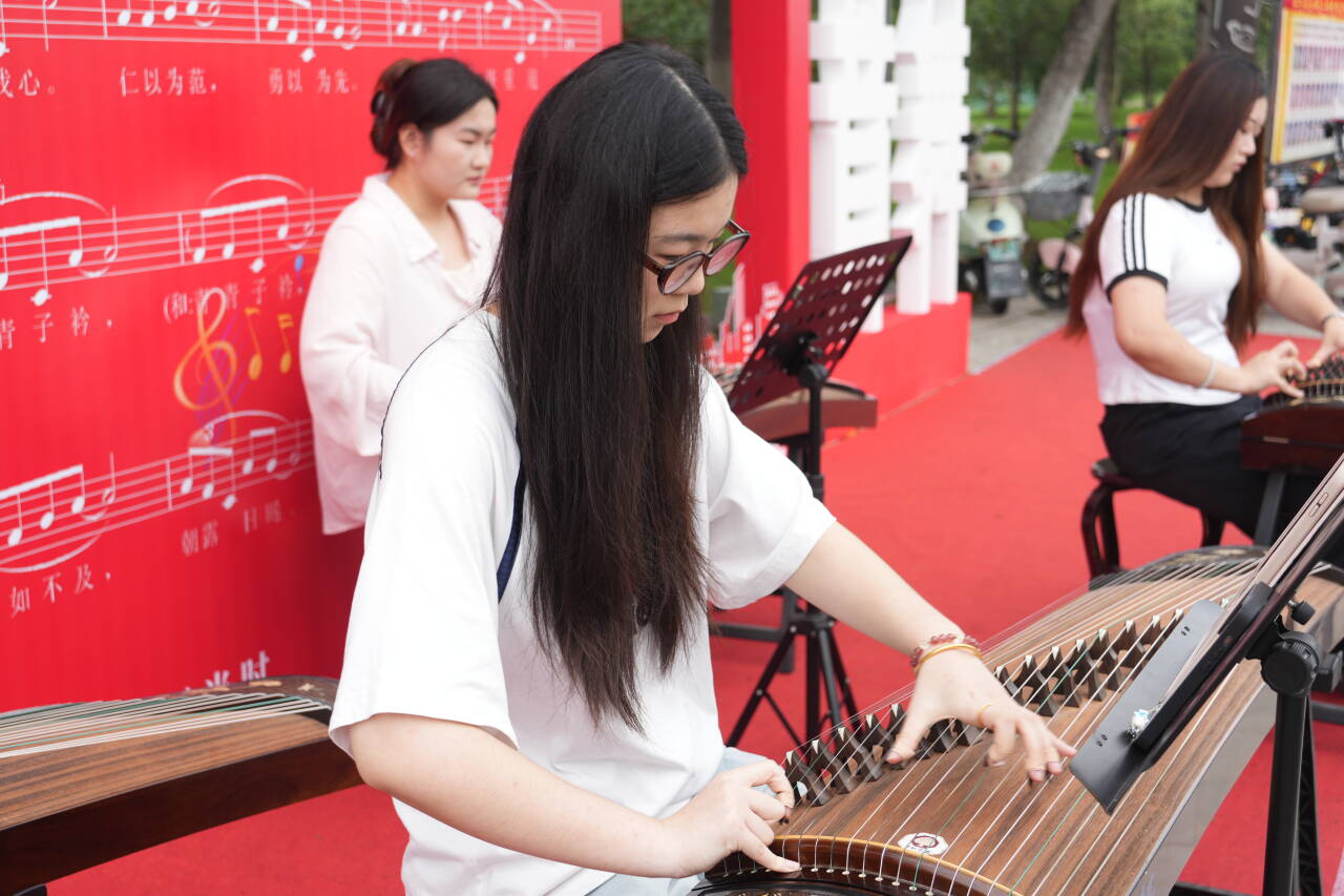 经济与管理学院的展台布置着仿真商业图表、经典案例手册,艺术设计学院独立设计的拟人化“艺小设”形象在展牌上笑着挥手,外国语学院的展台上,英文版的“欢迎新同学”标语卡片错落悬挂,文学与教育学院的展台风车悠悠转动,新生们拿着印着“执笔逐光”的祈福贺卡,在展台前笑盈盈拍照打卡,音乐与舞蹈学院的展牌印着校歌《青青子衿》的乐谱,现场热情的歌声引得新生驻足聆听……每个学院都是精心策划、用心呈现,为新生打造一场浪漫的仪式,传递给新生一份家的温暖和美好。
