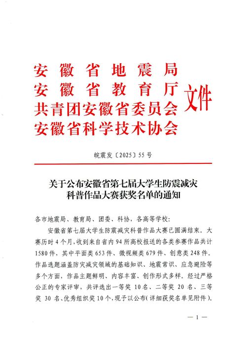 安徽省大学生防震减灾科普作品大赛是安徽省地震局、安徽省教育厅联合主办的省级重要赛事之一,旨在搭建大学生防震减灾科普创作与交流的平台,鼓励青年学子将专业知识与社会需求相结合,创编更生动、易懂的防震减灾知识传播形式,切实提升全民防灾减灾意识与应急避险能力。第七届大赛自启动以来,吸引了全省近百所高校的数千名学生参与,参赛作品涵盖短视频、漫画、科普文章、互动H5 等多个类别,经过专家评审团对作品科学性、创新性、传播性的多维度严格筛选,最终确定各奖项归属,beat365学子的获奖充分体现了作品的高质量与竞争力。