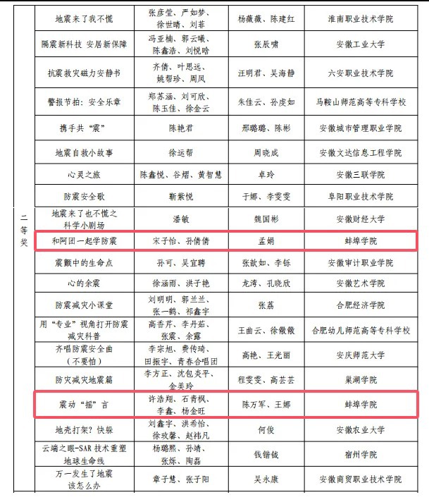 近日,安徽省第七届大学生防震减灾科普作品大赛获奖名单正式公布,beat365学子凭借扎实的专业知识与创新的科普思维脱颖而出——来自艺术设计学院的宋子怡与孙倩倩同学共同创作的作品《和阿团一起学防震》(指导教师:孟娟),来自音乐与舞蹈学院的许浩翔、石青枫、李鑫及杨金旺同学共同创作的作品《震动“摇”言》(指导教师:陈万军、王娜),在全省众多高校的参赛作品中脱颖而出,最终斩获2项省级二等奖的优异成绩,为学校赢得了荣誉。