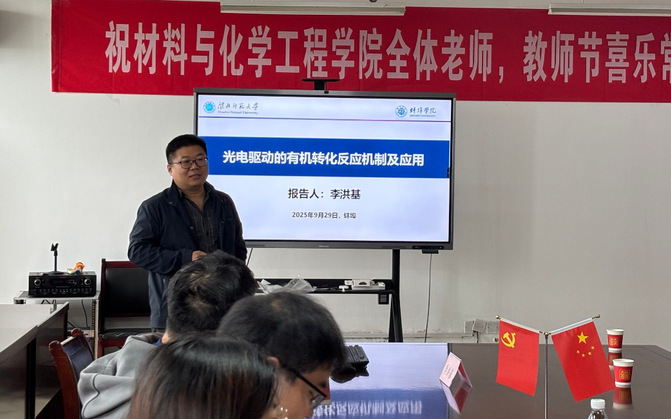 9月29日下午,材料与化学工程学院邀请淮北师范大学能源科学与工程学院李洪基教授在F1514会议室作了题为《光电驱动的有机转化反应机制及应用》的学术报告。院长葛金龙主持报告会,学院部分青年博士教师及部分同学参加。