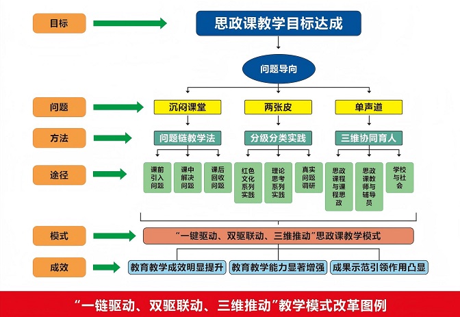 创新教学模式与实践体系:构建“一链驱动、双驱联动、三维推动”思政课教学新模式,推进“问题链教学”“小班化教学”“结构化研讨”,组织基于社会现实场景的“真实问题”调研,开展“分级分类实践”;同时打造“校外实践+校内实训+课内实践”一体化实践教学体系,推出“行走的思政课”“场馆里的思政课”,打破传统课堂边界。