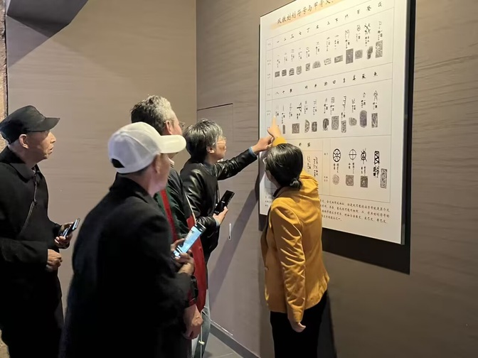 随后,一行人前往蚌埠双墩国家考古遗址公园,开启淮河文明溯源之旅。作为淮河中游地区新石器时代早期重要的考古遗址,双墩遗址于1985年被发现,其年代距今约7300年,是淮河文明起源与发展的关键见证地。在专业讲解员的引导下,离退休教职工和党员们饶有兴趣地参观了遗址展示区与文物陈列,仔细聆听双墩遗址的发掘历程、文化特征及历史价值。从刻画符号到生活器具,一件件珍贵的文物让大家直观感受到淮河文明的起源与发展脉络,深刻认识到蚌埠作为淮河文化重要发源地的深厚历史底蕴。