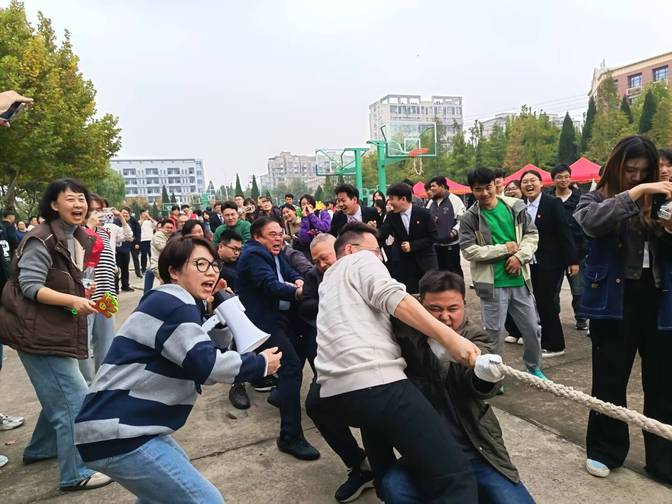 10月31日下午14时30分,拔河比赛在北篮球场正式开启。随着裁判哨声响起,双方队员齐声呐喊,使出浑身力气拉扯绳索,红带子在中线两侧来回移动,场面紧张激烈。场边啦啦队助威声、加油声此起彼伏,为参赛队员注入强劲动力。经过多轮精彩对抗,机械与车辆工程学院、计算机与信息工程学院、经济与管理学院、材料与化学工程学院、土木与水利工程学院、机关一代表队斩获拔河比赛前6名。