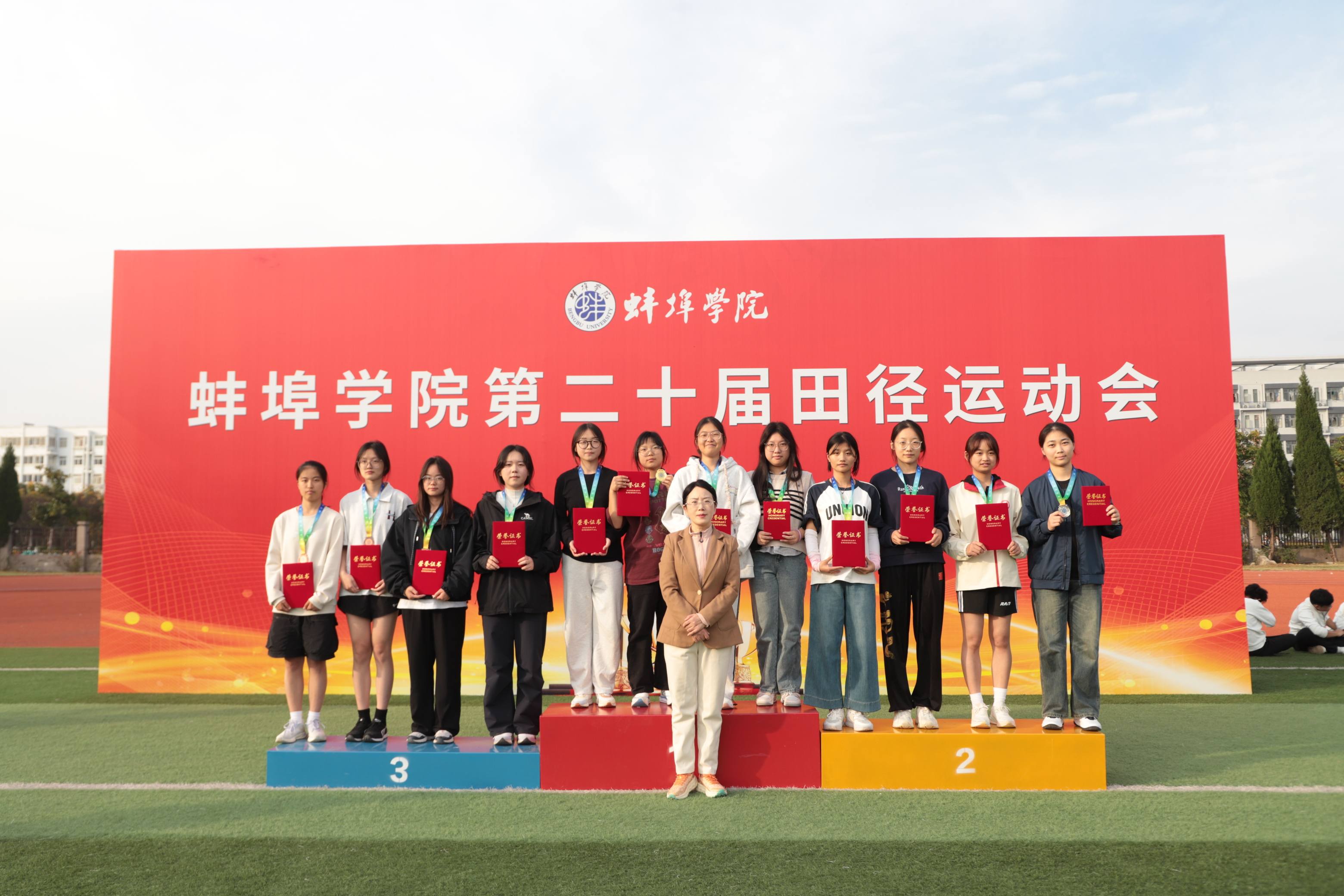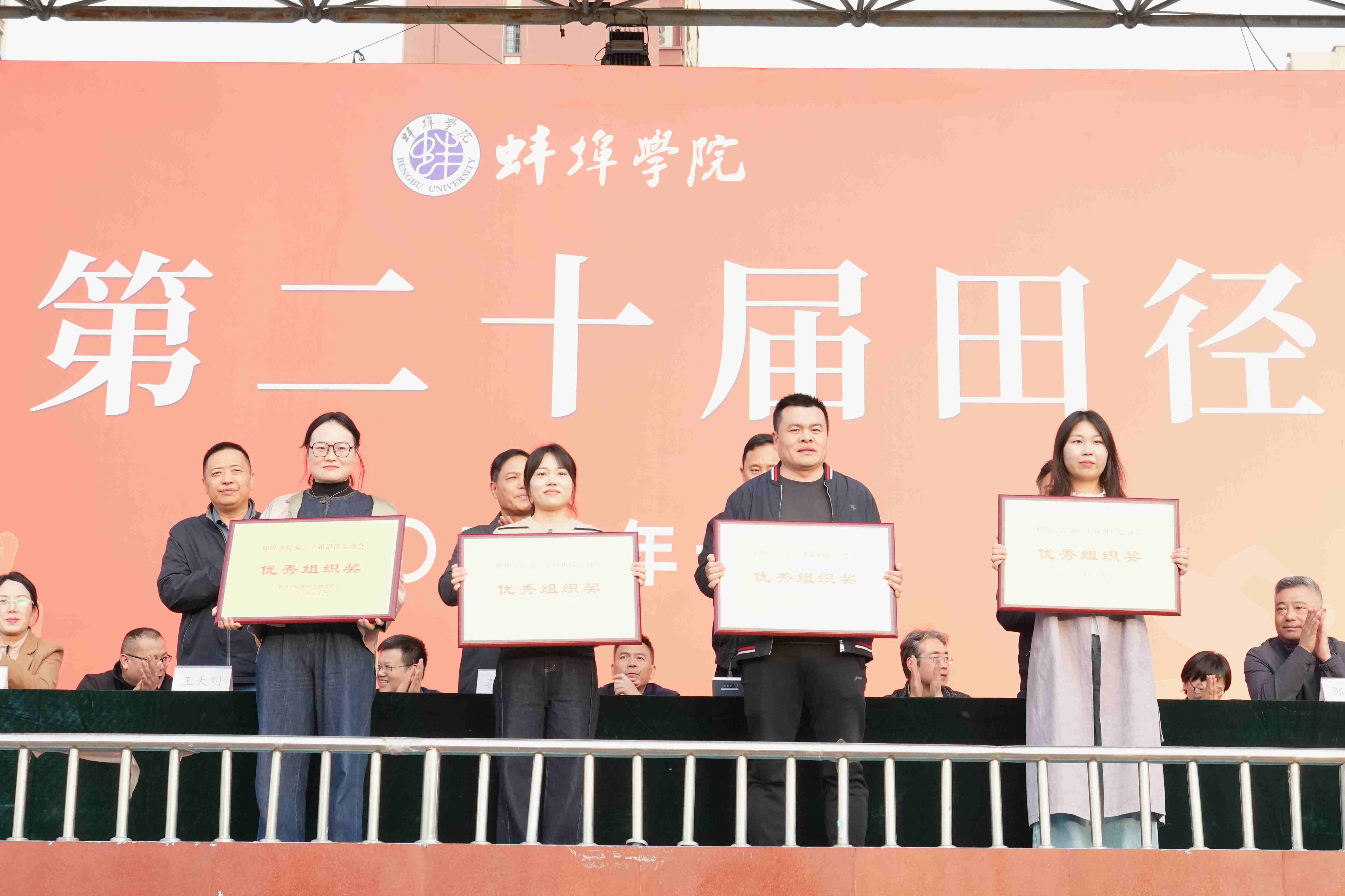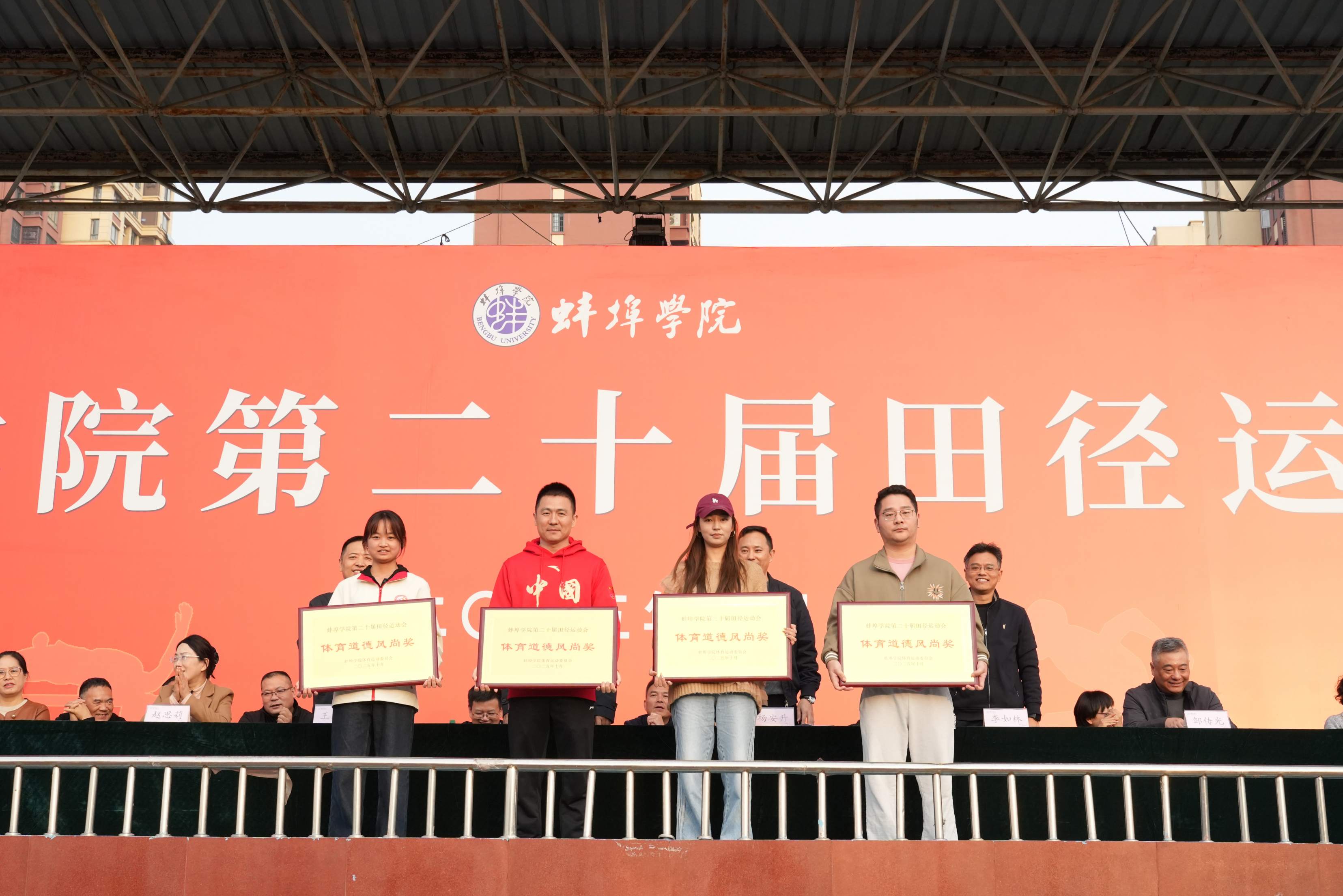 在团结协作彰显组织力量,在文明参赛展现道德风采,本届运动会颁奖典礼特别对表现突出的集体予以表彰。经组委会评定:材料与化学工程学院、机械与车辆工程学院、土木与水利工程学院、电子与电气工程学院凭借出色的赛事组织与团队协作能力,荣获优秀组织奖;文学与教育学院、外国语学院、音乐与舞蹈学院、应用技术学院在赛事期间展现出良好的体育道德风尚,获得体育道德风尚奖。教工组团体奖项由经济与管理学院分工会、音乐与舞蹈学院分工会、电子与电气工程学院分工会分列前三名。校领导与组委会成员共同为获奖单位颁发奖项。