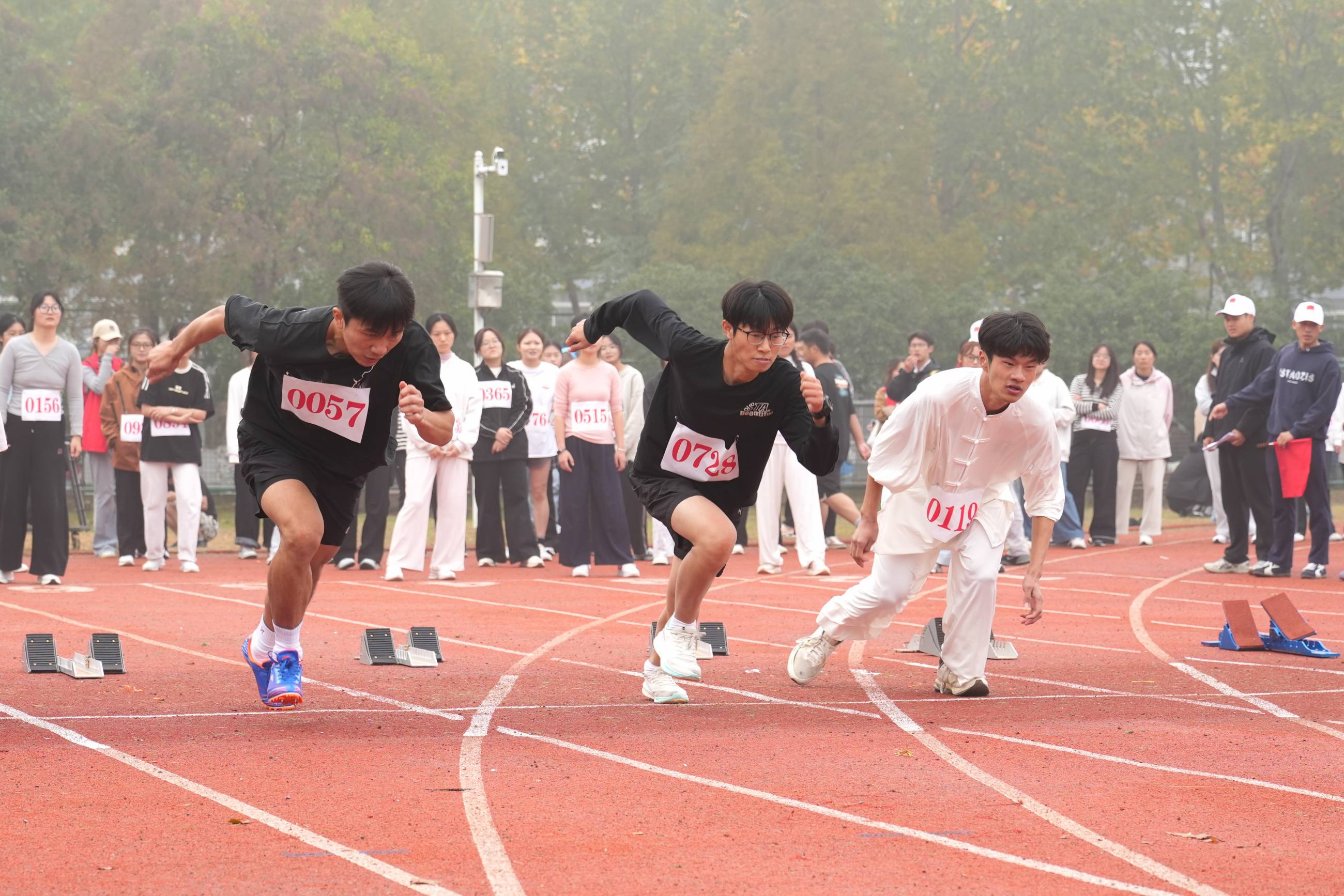 本届运动会赛况激烈,捷报频传。在田径赛场上,运动员们你追我赶、奋勇争先。百米跑道上的闪电对决,中长跑项目的耐力较量,跳高跳远场地的腾空飞跃,无不展现着蚌院学子昂扬的竞技状态。其中,材料与化学工程学院在多个项目中表现突出,以总分第一的成绩摘得桂冠;机械与车辆工程学院、土木与水利工程学院、电子与电气工程学院、文学与教育学院、数理学院等代表队同样发挥出色,分列总分二至六名。赛场上的每一次冲刺、每一次投掷、每一次跳跃,都是对更快、更高、更强体育精神的最佳诠释。