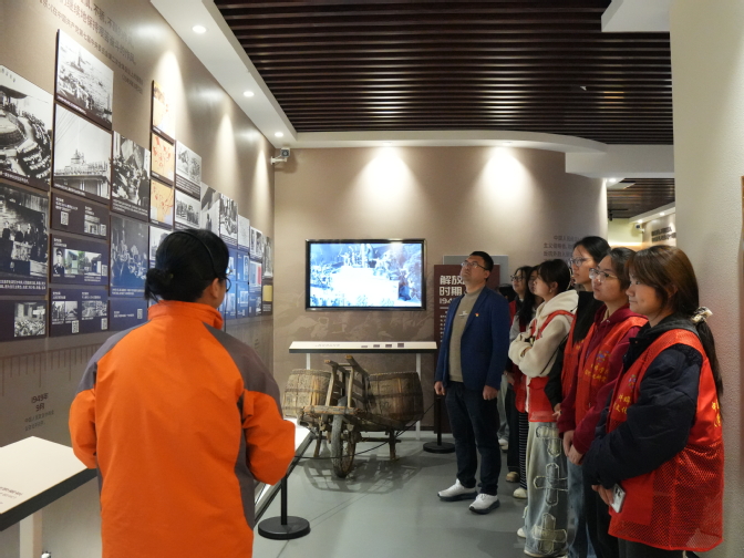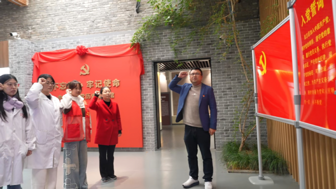 捐赠仪式结束后,淮河文化研究中心教工党支部、材料与化学工程学院无机非金属材料工程教工党支部与学生第三党支部的全体成员,以及参与活动的志愿者们,在讲解员的引导下参观了“中国共产党历史学习馆”。馆内陈列的一幅幅珍贵历史图片、一件件革命文物,辅以详尽的文字介绍,生动再现了党的百年奋斗历程。参观过程中,大家专注聆听讲解,不时驻足交流,深刻感悟党的初心与使命。同时,党员及预备党员在材料与化学工程学院无机非金属材料工程教工党支部焦宇鸿书记的带领下,面向党旗庄严宣誓,进一步坚定了理想信念和跟党走的坚定决心。