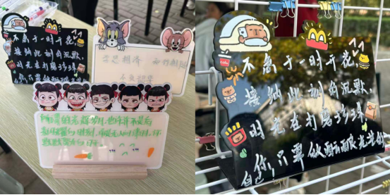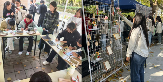 在深度互动环节,文创物品被精心汇集,形成了充满温度的“学风寄语墙”。同学们围绕在展示区周围,分享学习经验、互赠成长祝福。这一过程打破了传统交流的界限,使“学思结合、知行统一”的理念不再是抽象的口号,而是转化为可感知、可传递的情感连接。现场欢声笑语与纸笔摩擦的细微声响相互交织,互动氛围持续升温,生动实现了“学有所思、思有所悟、悟有所行”的育人实效。