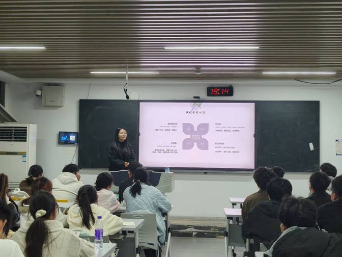 分享会伊始,辅导员张云昭点明活动意义:“希望通过学长学姐的宝贵经验,帮助新生尽快找到学习与实践的方法和方向。”李思雨同学聚焦专业学习策略,带来针对性极强的学习干货。面对生物化学、微生物学等核心课程知识点零散、记忆难度大的问题,她分享了归纳总结、联想记忆、构架思维的学习方法和既要个人主动学习又要学会团队协作的课程建议。