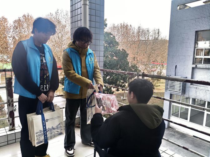 与此同时,在图书馆、自习室等考研学子集中的学习场所,学院考研学社与学生会代表们也同步开展了礼包发放活动。为了不过多打扰同学们宝贵的复习时间,学生代表们轻步穿梭于一排排书桌之间,将礼包悄悄放置在专注学习的学子手边,或利用休息间隙进行简短而热情的赠送。礼包虽轻,情谊却重,一份份承载着师弟师妹们真挚祝福的礼物,为静谧而紧张的学习空间注入了一股暖流。收到礼包的同学们露出惊喜的笑容,短暂交流中彼此加油打气,共同凝聚起拼搏向上的力量。