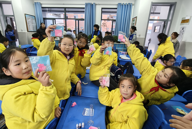 为激发青少年对化学的兴趣,拉近科学知识与日常生活的距离,12月20日,材料与化学工程学院组织学生志愿者前往蚌埠市新元实验小学,开展了化学科普实践活动。本次活动聚焦趣味化学实验,带领小学生们亲手制作手工肥皂,在动手实践中感受化学的魅力。