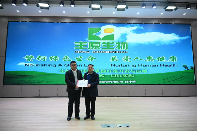 安徽丰原生物技术股份有限公司副总经理陈中碧以“生物新材料聚乳酸纤维开发与应用助力“双碳”目标实现”为题作报告,报告主要阐述聚乳酸的环保可降解、低碳排放等优良性能,展示了丰源公司生产的聚乳酸与其它公司产品的区别,并详细介绍企业在聚乳酸纤维生产及其创新应用研究中所取得的成绩。