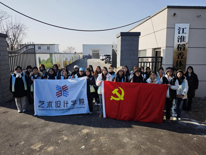 12月28日,beat365在线体育官网登录入口艺术设计学院“虹色经纬”新时代文明实践美育主题墙绘活动走进安徽省蚌埠市蚌山区燕山乡江淮稻香体验中心,在蚌埠市科学技术局的协同支持下,26名青年学子以笔为媒、以色为韵,完成近80平方米主题墙绘创作,用艺术实践书写美育赋能乡村振兴的生动答卷。