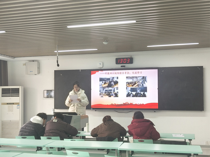 述职环节,各团支部书记结合实际以案例汇报履职成果。思想引领上,围绕党的二十届四中全会精神学习、就业观教育等主题,通过主题团日等形式开展理论教育;组织建设方面,说明“智慧团建”维护、团员档案管理、团费收缴及推优入党等基础工作落实情况;实践服务上,汇报四六级考试和考研经验分享会、宿舍矛盾协调、学业帮扶等务实工作。同时,团支部书记们直面活动形式创新不足、沟通不深入等问题,提出改进计划。