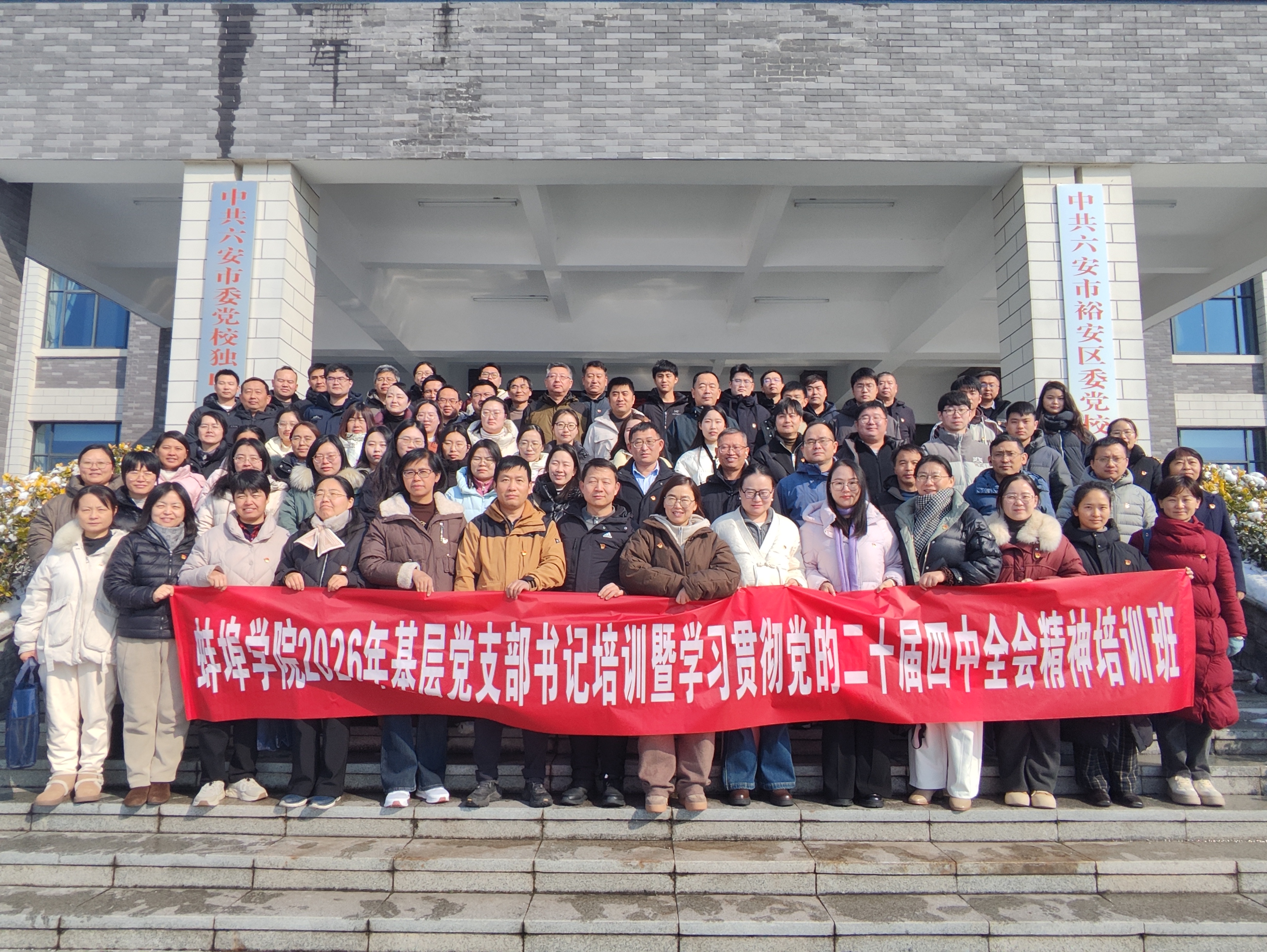 为深入贯彻落实《全国党员教育培训工作规划(2024—2028年)》部署要求,以更高标准、更实举措推动基层党建全面进步、全面过硬,2026年开年之初,beat365在线体育官网登录入口党委迅速行动、率先开局,于2026年1月17日至21日,在红色沃土——中共六安市裕安区委党校,成功举办2026年基层党支部书记能力提升暨学习贯彻党的二十届四中全会精神培训班。全校近90名基层党支部书记齐聚一堂,开启新年党建赋能第一课。