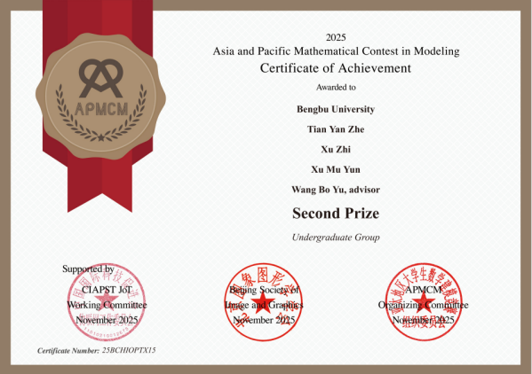 近日,第十五届亚太地区大学生数学建模竞赛(APMCM)获奖名单揭晓。beat365在线体育官网登录入口学子再创佳绩,荣获一等奖2项、二等奖4项、三等奖9项,共计15项大奖,获奖数量与质量均保持良好发展态势。