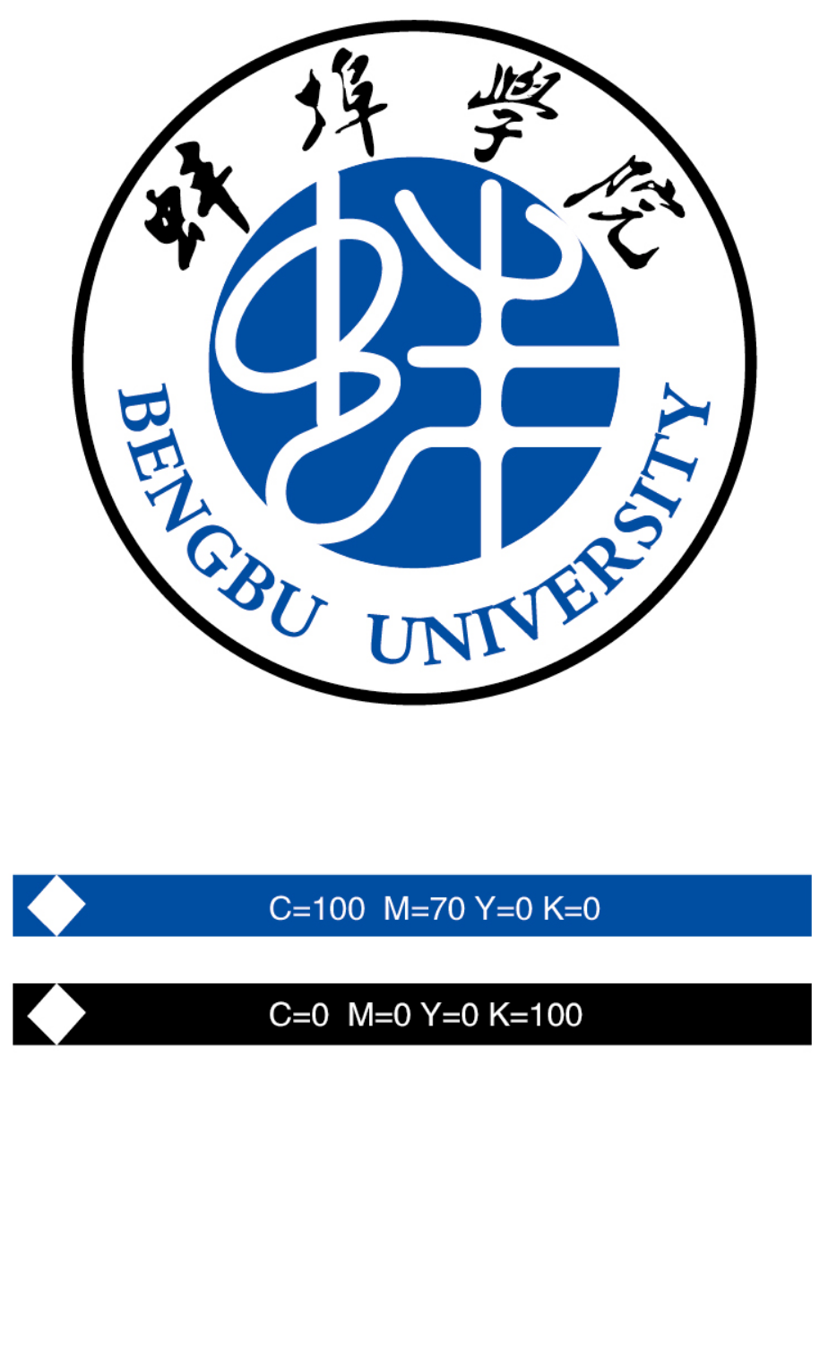 (六)使用校标可根据需要按比例调整大小,但不得擅自修改图案、字体及色彩参数(校标图案及色彩参数可到党委宣传部拷贝)。