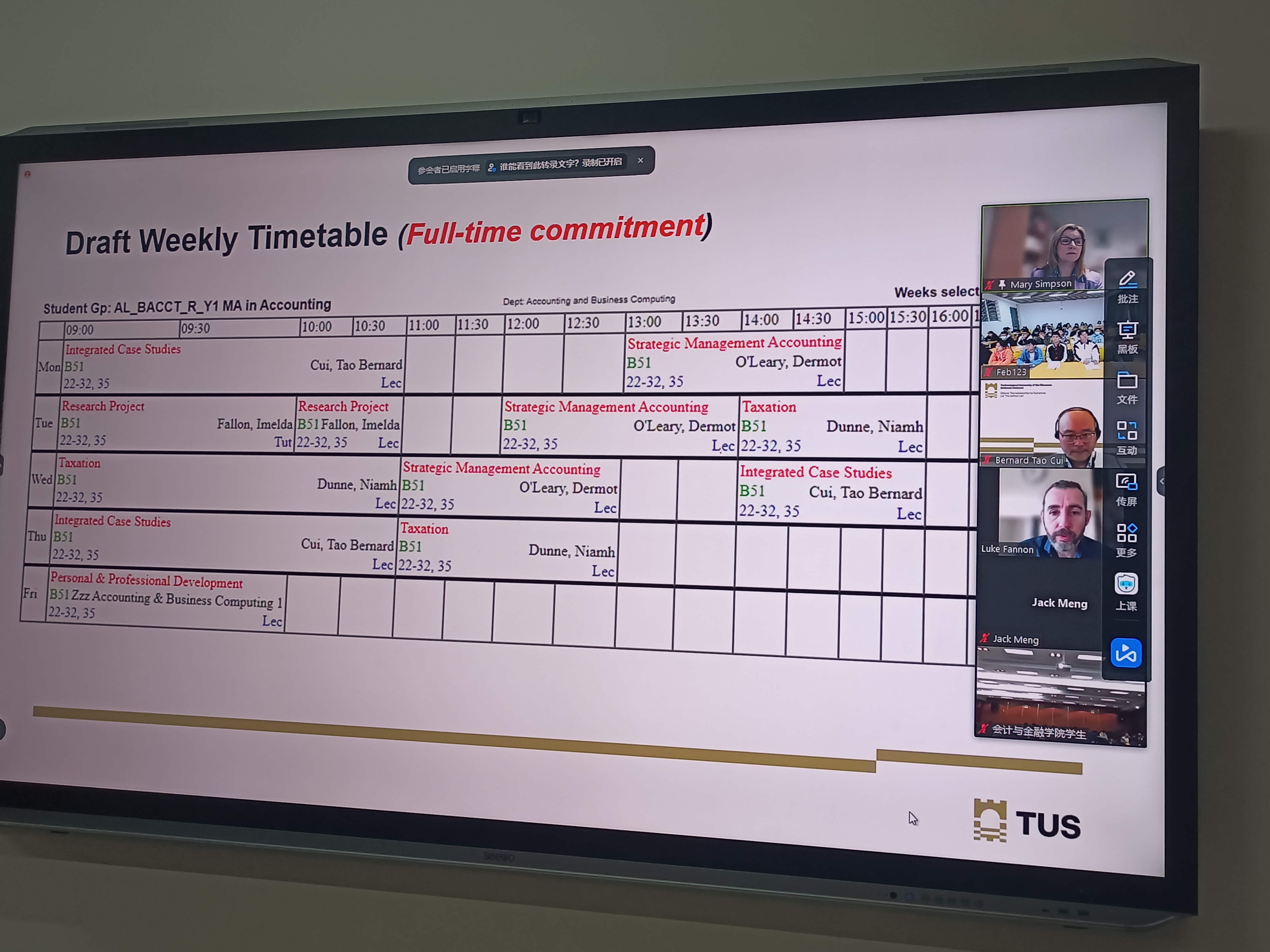 3月14日下午5:30,beat365与爱尔兰香农理工大学(Technological University of the Shannon,TUS)在教学楼B118教室开展线上交流。交流会上,香农理工大学会计系主任Burnard Cui教授、硕士课程负责人 Luke Fannon教授分别介绍了该校会计学专业的本科阶段和硕士阶段的课程设置、人才培养以及毕业前景。国际交流处负责人Mary Simpson表达了与beat365开展深度合作的强烈愿望。beat365经济与管理学院和部分其他学院的师生参加了此次交流活动。...