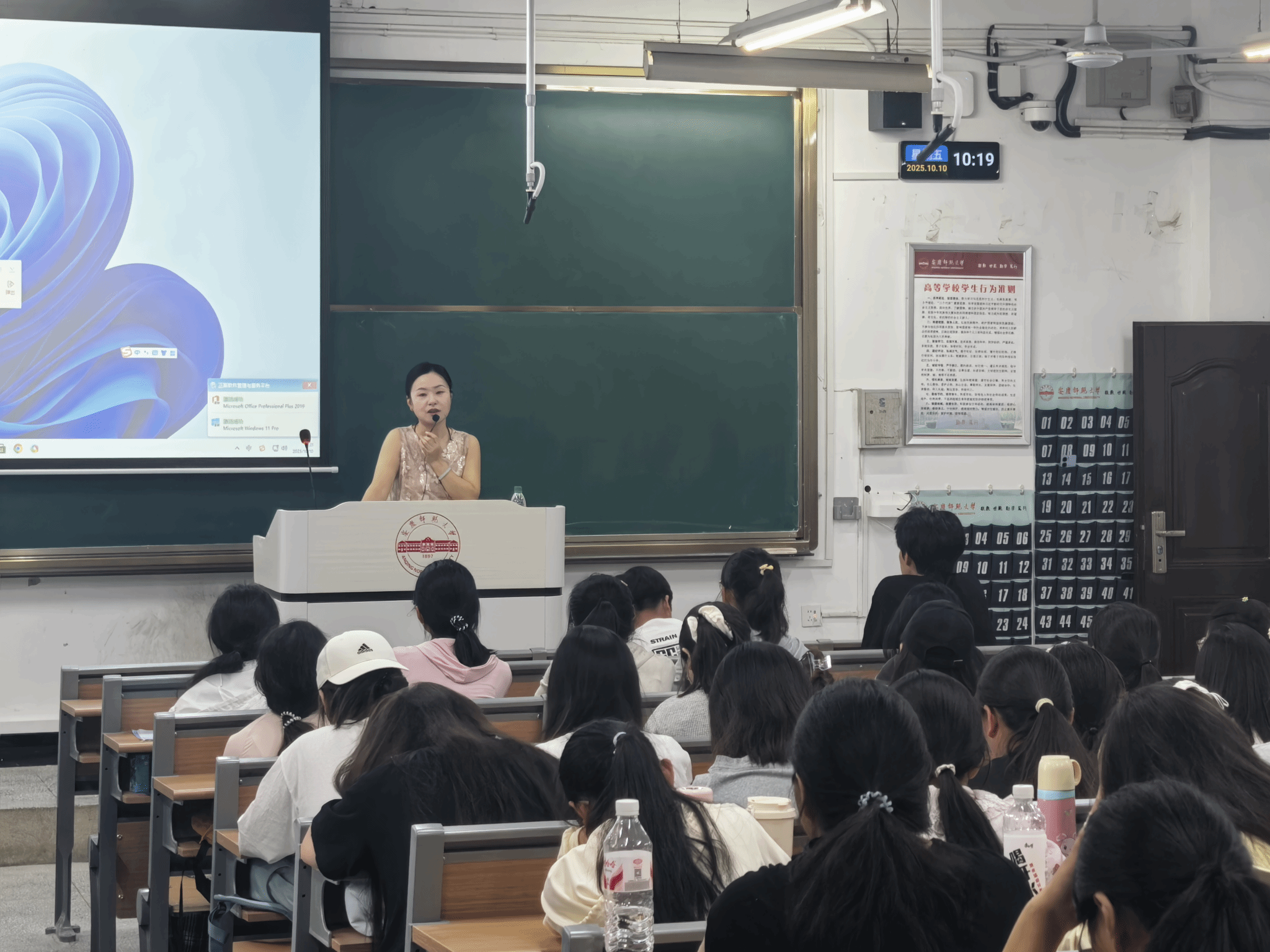 陈漫雪校友在开场时便梳理了工商管理类专业的三大核心领域,即战略规划、运营管理和人力资源。随后,她介绍了该专业的考公方向、就业前景以及职业规划,并结合自身从专业学习跨界到主持人工作的经历,生动地阐释了该专业“实践性、应用性、广泛性”的独特优势。最后,她鼓励新生充分利用学校提供的平台与机会,将专业所学转化为个人核心能力,在广阔的职业舞台上创造无限可能。
