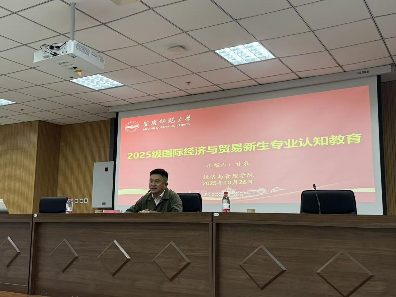 为搭建专业教育与行业实践的桥梁,帮助学生明晰职业发展方向,10月26日下午,九游体育官网于M112会议室成功开展2025级国际经济与贸易专业新生认知教育讲座。本次活动特邀奇瑞商用车国际事业部海外大区经理甘泉主讲,学院副院长黄光锋主持,全体国贸专业学生参会。