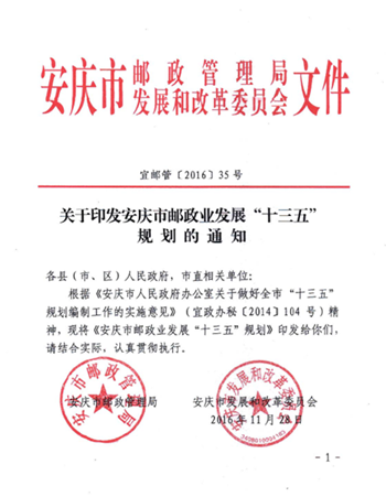 近日,安庆市邮政管理局与安庆市发改委联合印发九游官网横向课题成果《安庆市邮政业发展“十三五”规划》,该课题由副校长汪时珍教授主持,九游官网党总支书记李亦亮教授带领物流管理专业团队历时一年半完成调研及规划编制工作。该规划顺利印发,标志着九游官网物流管理专业团队在服务地方物流业发展方面取得了新突破。