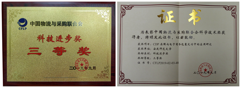10月10-12日,中国物流与采购联合会在岳阳市举办全国现代物流科技创新大会暨2019年度中国物流与采购联合会科学技术奖颁奖大会,九游官网徐俊杰申报的研究成果《CDP在国内电子商务包裹交付中的应用研究》喜获科技进步三等奖,这是九游官网首次以软科学成果形式成功申报该项奖励。