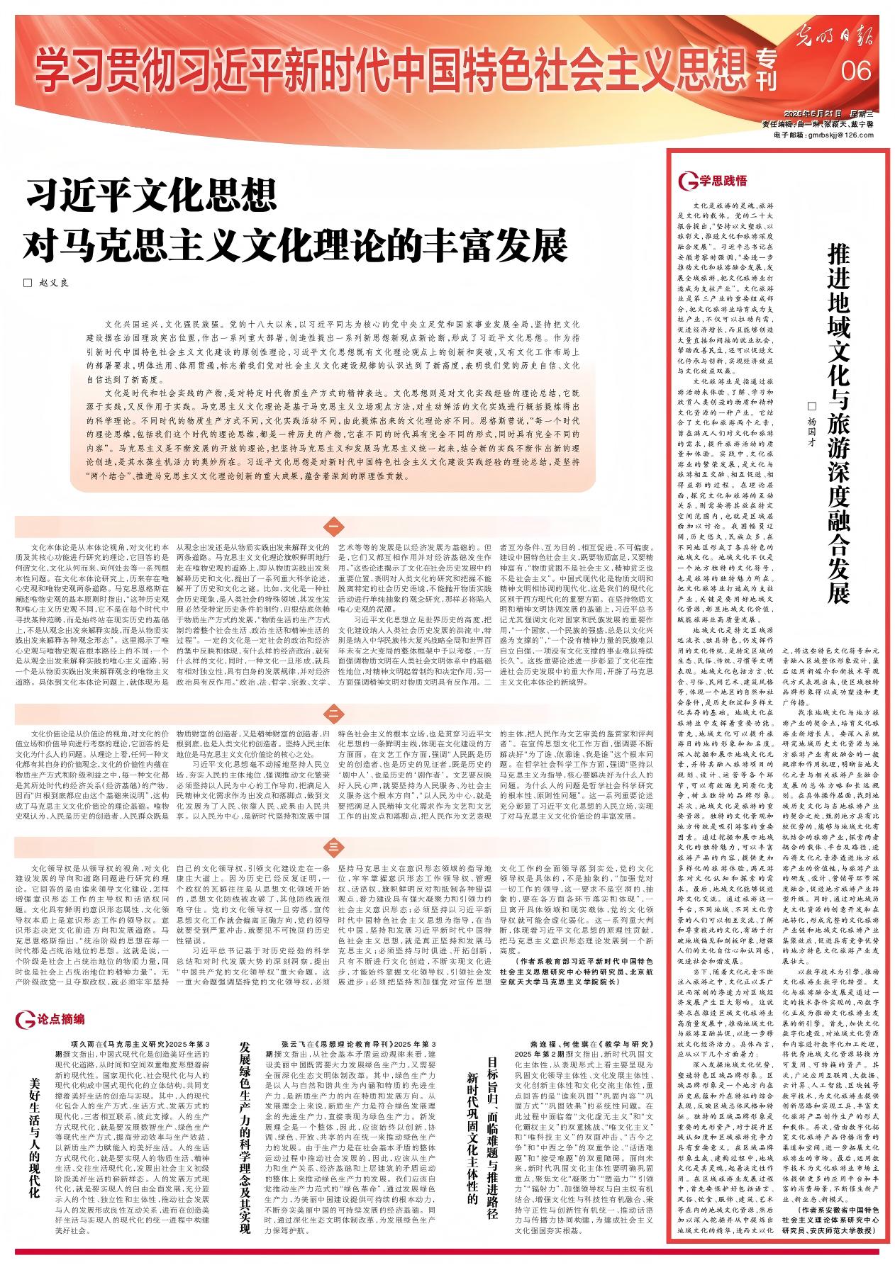 九游官网杨国才教授撰写的理论文章《推进地域文化与旅游深度融合发展》在《光明日报》(2025年5月21日 06版)刊发。文章围绕当前文化和旅游深度融合的发展态势,系统分析了地域文化在推动文化旅游业高质量发展中的关键作用与深远意义。