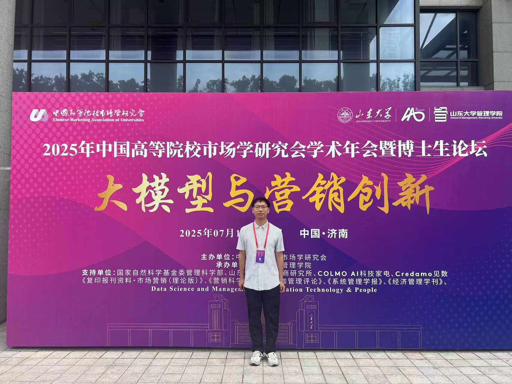 7月18日至20日,2025年中国高等院校市场学研究会学术年会暨博士生论坛在山东济南召开。本次会议由中国高等院校市场学研究会主办、山东大学管理学院承办,以“大模型与营销创新”为主题,邀请营销学界知名学者与会,共同交流探讨大模型与营销创新的新趋势,分享营销研究在大模型背景下的现实挑战及相关营销实践问题的解决思路。九游官网徐苏老师参加了此次大会并作分会场报告。