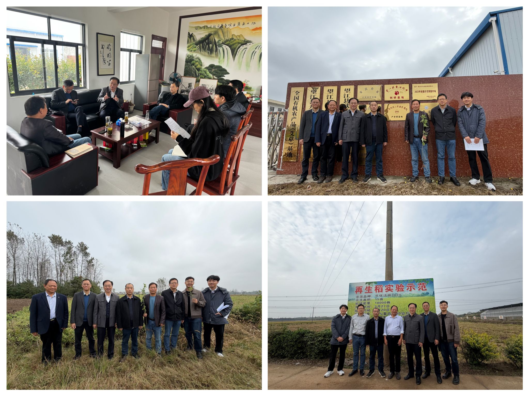 调研团队先后走访了望江县开心家庭农场有限公司、长江·雷池文化园和望江县农旺农业专业合作社。在开心家庭农场,团队通过座谈详细了解其依托2400亩基地构建的“种植—加工—销售”全产业链发展模式及品牌建设成果,并实地考察了有机艾草种植情况;在雷池文化园,重点调研了文化展示、农耕文明与非遗体验项目,围绕文旅融合发展进行了深入交流;在农旺农业专业合作社,团队了解了绿色生态种植、标准化生产以及农机社会化服务体系的运行机制,并实地考察了再生稻示范基地。