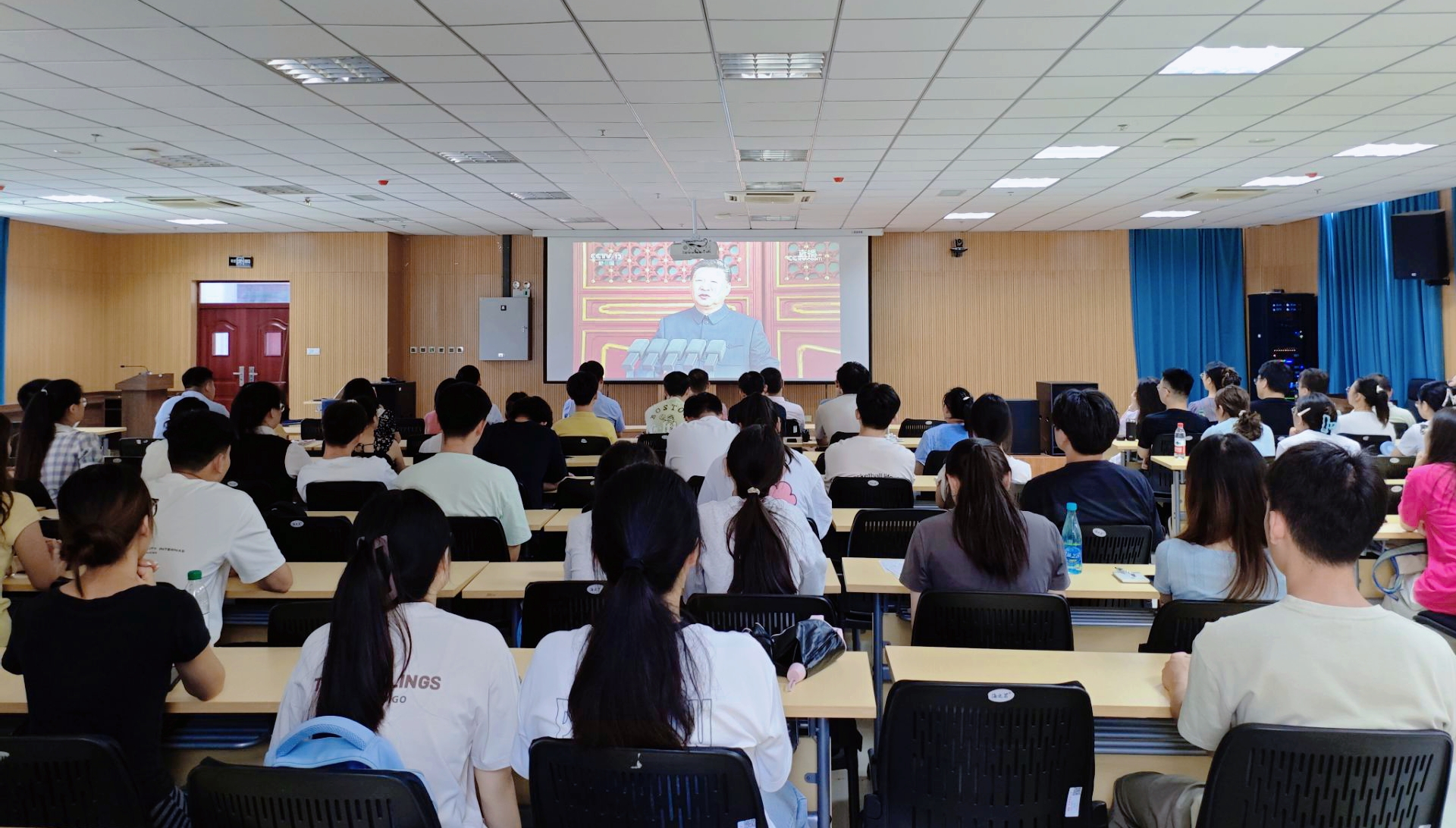 9月3日,学院组织集中观看纪念中国人民抗日战争暨世界反法西斯战争胜利80周年大会,学院班子成员、党支部书记以及师生代表参加活动。