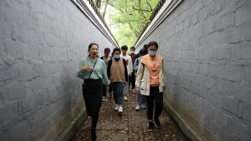 六尺巷位于安徽省桐城市的西南一隅,全长100米,宽2米,建成于清朝康熙年间,巷道两端立石牌坊,牌坊上刻着“礼让”二字。“千里家书只为墙,让他三尺又何妨。万里长城今犹在,不见当年秦始皇”。简简单单的让三尺,化解了这场让双方针锋相对的矛盾。六尺巷蕴含了中华民族和谐礼让的传统美德故事,这一故事流传至今,家喻户晓。当地讲解员对六尺巷中的每一处细节进行了详细介绍,师生们仔细聆听,认真参观,并对六尺巷有了更加深刻的认识。