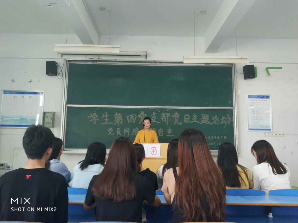 为规范党员网络行为,进一步发挥党员模范带头作用,5月23日下午,学生第四党支部在C楼302教室开展党员网络言行自查自纠专题活动。