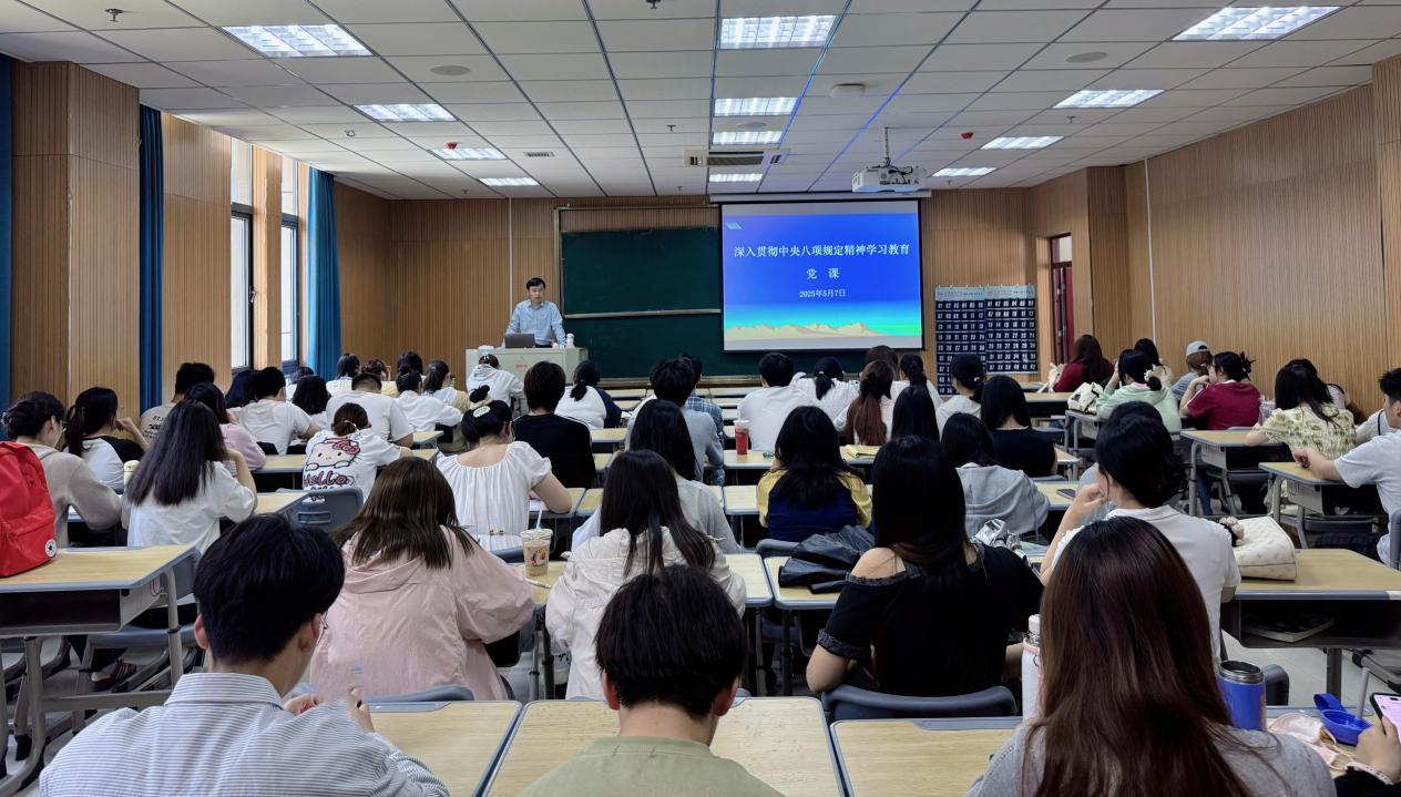 5月7日,学院举办深入贯彻中央八项规定精神学习教育专题党课,党课由学院党委书记刘燕杰主讲,学院研究生党支部全体党员及第71期入党积极分子培训班全体学员聆听了党课报告。