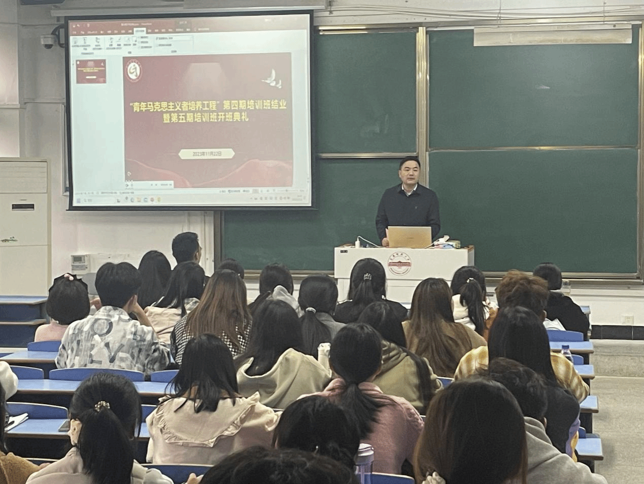 开班典礼在庄严肃穆的国歌声中拉开序幕。周毅代表学院对本期培训班的开班表示热烈祝贺。他指出,开办青年马克思主义培训班,是培养忠于信念、勤于认知、勇于创新、敢于担当的青年马克思主义者的有力举措;是学院培养优秀学生干部的重要抓手;是帮助学生干部提升自我的有效措施。他对全体学员提出了三点要求:一是筑牢思想根基,做坚定的马克思主义信仰者;二是勇担时代责任,做积极的马克思主义传播者;三是践行知行合一,做忠实的马克思主义实践者。他希望,青年学员通过在培训班的理论学习和实践锻炼,不断提高理论水平和工作能力,努力成长为用马克思主义中国化的最新理论成果武装头脑的青年马克思主义者。