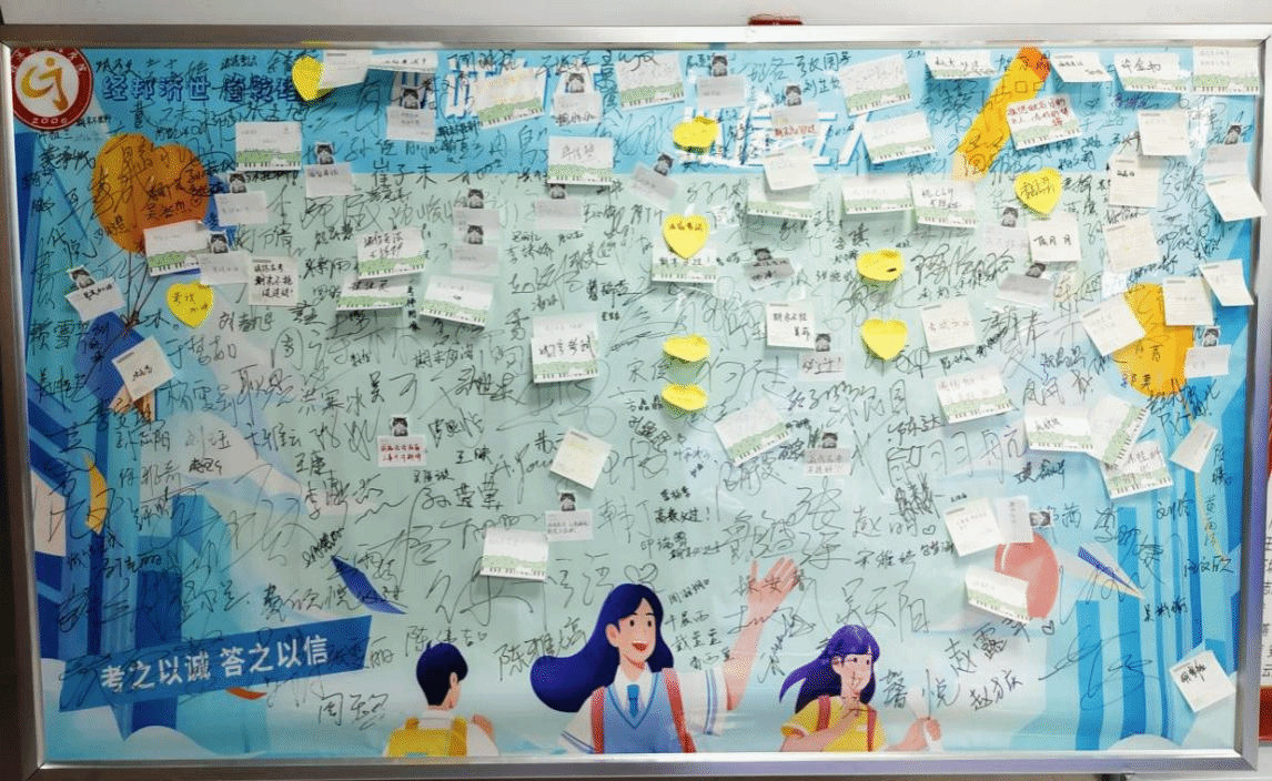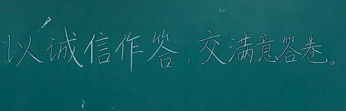 学院在教学楼开展诚信标语活动。同学们在黑板上写下各种诚信考试的标语,以此提醒大家认真备考、遵守考场纪律,营造出诚信考试的氛围。