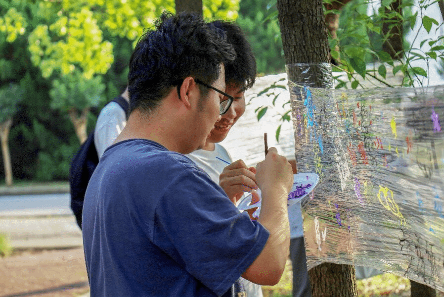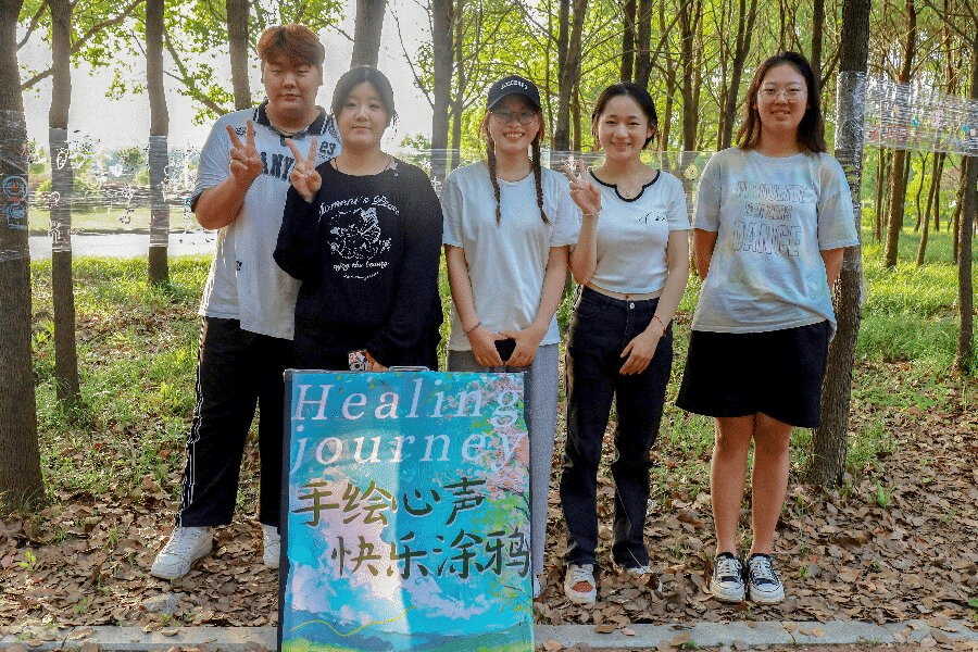 5月25日,九游体育官网2023级工商管理专业在M楼旁树林前举办以“手绘心声,快乐涂鸦”为主题的心理健康主题活动,活动吸引了120余名同学参与。