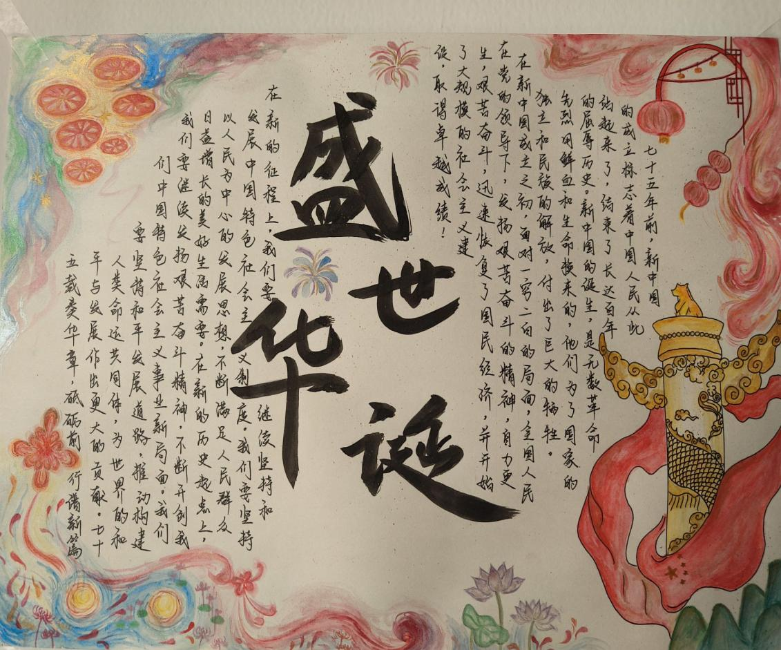 本次大赛分为教室设计和寝室设计两个部分。在教室设计中,参赛班级将责任晚自习教室打扫的一尘不染,利用图文结合的手抄报形式,生动展现了国家的繁荣昌盛。