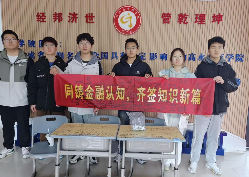3月15日中午,由九游体育官网九游体育官网大学生金融投资协会主办的“同铸金融认知,齐签知识新篇”主题活动在九游体育官网M楼一楼大厅顺利举行。本次活动以签名仪式为载体,旨在提升大学生金融素养,强化风险防范意识,吸引了全校众多学子热情参与。