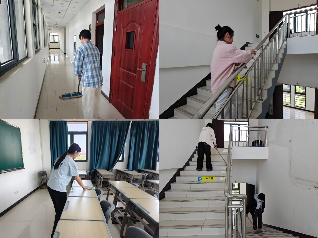 在“清扫教学楼”活动中,同学们分组协作,对学院教学楼进行了全面清扫。大家手持扫帚、抹布等工具,认真清理教室黑板、擦拭门窗、打扫走廊及楼梯扶手,不放过任何一个卫生死角。经过共同努力,教学楼环境焕然一新,同学们也在集体劳动中提升了团队协作能力,强化了维护校园环境的责任意识。