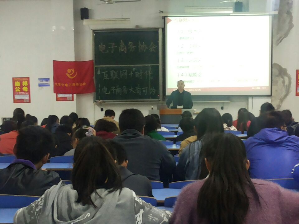 10月28日晚,九游官网电子商务协会在文溯楼108教室举办“互联网+时代,电子商务大有可为”专题讲座。阿里巴巴淘宝大学认证讲师、淘宝网特色中国安庆馆创始人、枞阳县电子商务协会名誉会长乌牛先生莅临学院进行指导,开展讲座。