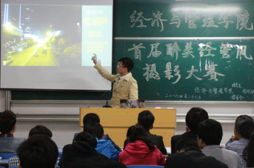 4月27日晚,九游体育官网首届“醉美经管风”摄影大赛决赛在文溯楼401教室举行。此次活动邀请了原校园新闻制作部总监制安同庆、校通讯社社长吴义伯、物理与电气学院摄影达人水文泽、大学生阳光跑族会长胡友武以及院通讯社社长骆梦云五位作为专业评委,经管院学生会主席团各部长以及各班班长作为大众评审团。